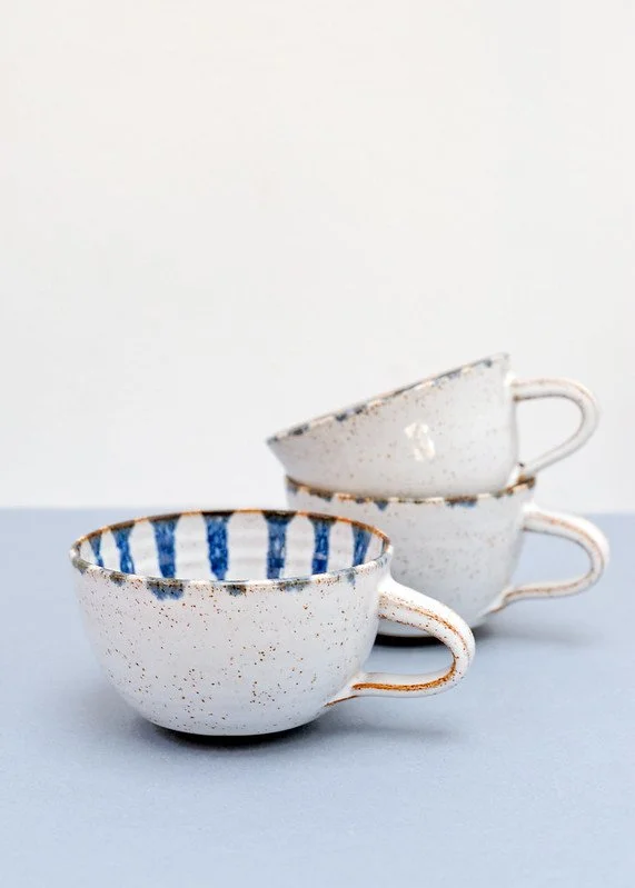 Rachel makes everyday pots from stoneware, focusing on shape and form and the experience of how it feels in your hand. Each piece is individually handcrafted in her studio in Brighton, on the Southeast coast of England. Rachel’s ceramics are contemporary and rustic in their look and feel. They demonstrate her passion for simplicity of line, form and colour. Her palette includes shades of blue, pewter black and glossy white in varying combinations and reflect the coastal environment where she lives.